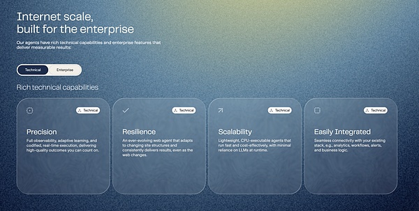 在技术架构的设计上,TinyFish展现了对现代AI技术的深刻理解。Shuhao Zhang在技术分享中提到:"生成式AI和新发布的推理模型的进步使网络变得更加复杂,传统工具更难访问。"但同样是这些推理模型,为TinyFish的企业Web Agent提供了理解和处理今日网络复杂性的能力,让公司能够安全地扩展其运营,并将复杂性转化为商业优势。