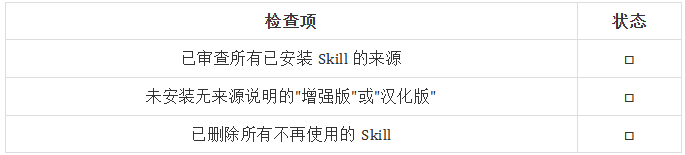 · 定期审查已安装的 Skill 列表,删除不再使用的