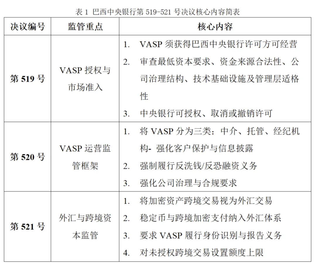 在此基础上,巴西中央银行于 2025 年 11 月发布第 519、520 及 521 号决议,上述决议已于 2026 年 2 月 2 日正式生效,核心内容如下: