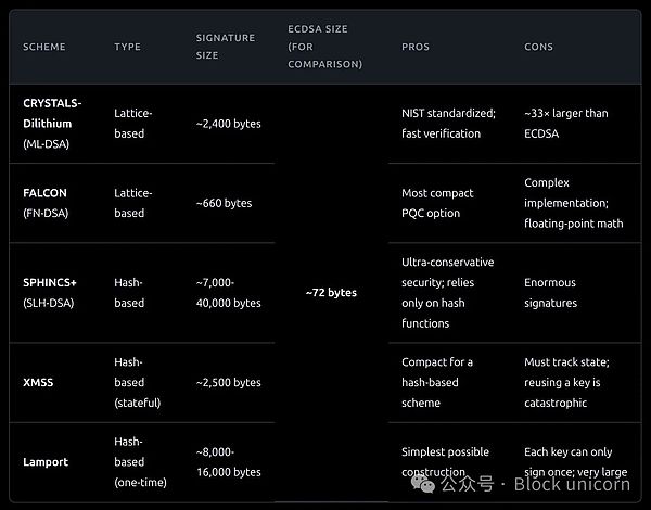 有几种 PQC 签名方案可能取代比特币中的 ECDSA: