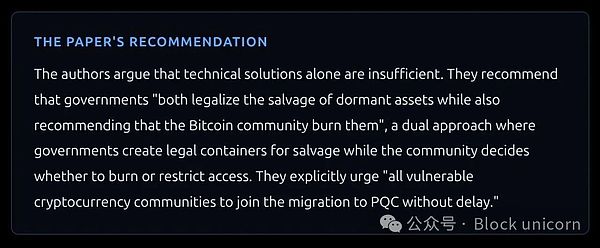 我发现论文中最引人深思的部分是第八节,它探讨了一个最具政治敏感性的问题:休眠资产,即由丢失密钥、已故所有者或废弃钱包持有的比特币,将如何处理?