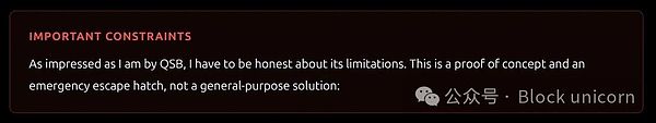 QSB 是一项卓越的技术成就,它是一种在比特币现有规则下运行的量子安全方案。由于其成本、复杂性和脚本限制,它只能作为一种紧急逃生方案,而非通用解决方案。