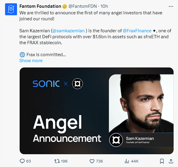 3月28日,Fantom宣布新一轮针sonic的融资的进展情况,首位参与的天使投资人是FraxFinance 的创始人。与Frax的合作对Fantom的Defi复苏或能找到一些新的路径。不过这也仍需观察双方的合作程度。