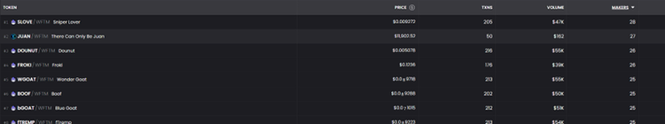 不过,Meme币的爆发往往代表的是生态繁荣的结果。Fantom生态的项目目前为254个,2024年2月曾一度迎来新地址的突增,最高单日新增57万个。但在近期官方动作频频的情况下,每日新增地址仅为数千个。每日新发行Meme币数量也为100个左右,平均的持币人也仅为20~30人之间。据tokenterminal数据显示,Fantom近一个月的平均日活用户约在5万人左右。总体来看,生态的活跃度仍与以太坊、Solana等公链存在不小的差距。
