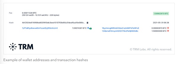 在开展资金来源(SoF)分析、沿不同地址回溯资金时,请记住区块链追踪的一项基本原则:通常无法“穿透”交易所、场外柜台、支付处理机构等加密服务方进行追踪。
