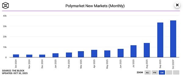 数据来源:https://www.theblock.co/data/decentralized-finance/prediction-markets-and-betting/polymarket-new-markets-monthly