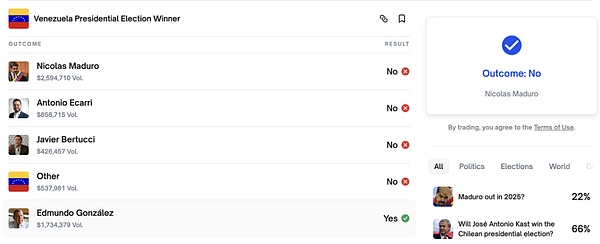 资料来源:https://polymarket.com/event/venezuela-election-winner/will-nicolas-maduro-win-the-2024-venezuela-presidential-election