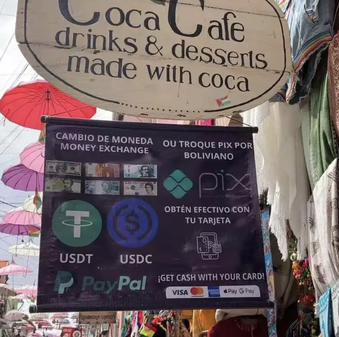 而我则完全相反。我往账户里存的是 USDT,却用 Meru 的二维码去支付本地消费。玻利维亚的商户二维码会分国际码和本地码,我扫的是本地码。当我告诉商家 “我要扫本地码” 时,他们都会很好奇,因为我又有本地银行账户、又用稳定币支付,比较少见。