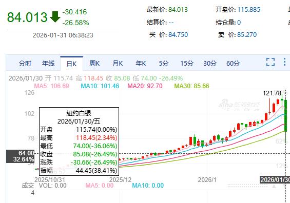 沃什提名日,现货黄金失守5000美元/盎司,暴跌跌幅超13%;现货白银一度暴跌,跌幅近36%。
