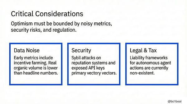 安全性:声誉系统的女巫攻击与暴露的 API Key 仍是主要威胁向量,@moltbook 已经出现相关事件。