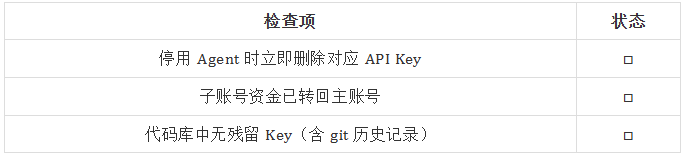 · 停用 Agent 时立即删除对应 Key,不留残余攻击面