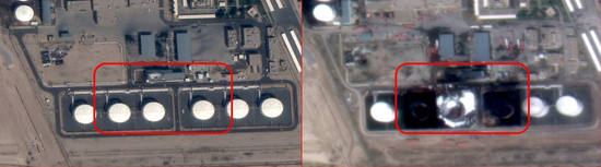 此后,伊朗方面还公布了数张中东地区的美军设施遭袭前后对比图。卫星图像显示,位于沙特的苏丹王子空军基地内3架KC-135空中加油机被毁,另有数架其他型号军机受到严重损坏。