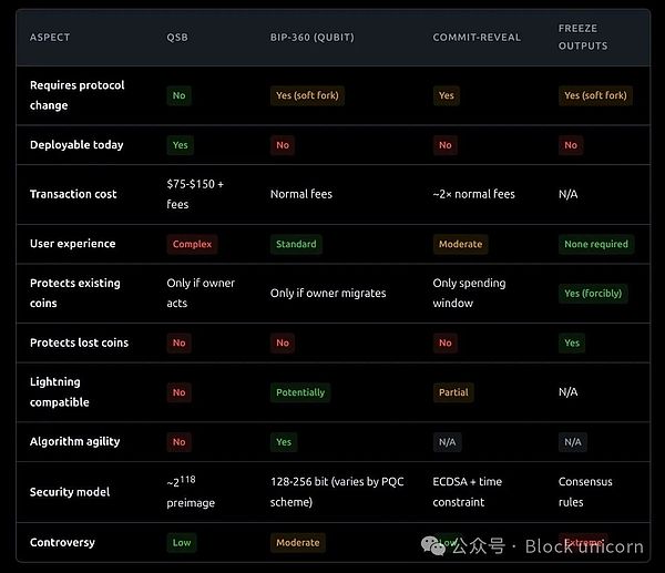 QSB 是一项卓越的技术成就,它是一种在比特币现有规则下运行的量子安全方案。由于其成本、复杂性和脚本限制,它只能作为一种紧急逃生方案,而非通用解决方案。