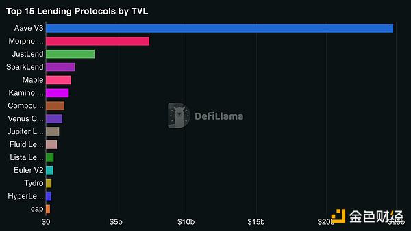 Aave V3、Morpho V1 等头部协议 TVL 规模巨大,而 DeFAI 智能体在借贷与收益耕作中的再部署 TVL 虽超 20 亿美元,但仅占整个 DeFi 总 TVL(1300–1400 亿美元)的不到 2%。