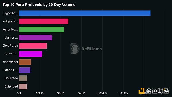 排名前十的永续合约协议近 30 天交易量达 5006 亿美元,仅 Hyperliquid 就占据 1890 亿美元(38%),其后是 edgeX(706 亿美元)与 Aster(647 亿美元)。